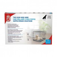 Dogit Two Door Wire Home Crate is designed to provide your pet with a safe, secure and comfortable place to rest, sleep or travel. The portable crate is ideal for placing at the rear of SUVs or mini-vans. It has a comfortable handle that helps make carrying easier. The cage has two large doors, located at the front and side, that allow easy access. Each entry has a secure sliding latch. It also includes a divider grill and a pull-out tray for easy cleaning. Made of safe and sturdy epoxy-coated metal wiring, the crate is built for lasting strength and durability.