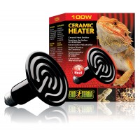 The Exo Terra Ceramic Heater is a radiant heat source which creates a natural sun-like heat with a uniform pattern. The long wave infrared heat produced by this emitter will warm reptiles very efficiently. It also increases the ambient air-temperature in the terrarium. Infrared heat penetrates the scales and skin tissue, promoting health and healing as it widens the blood vessels and increases blood circulation. The Ceramic Heater is to be used only with the specially designed Exo Terra Wire Light.