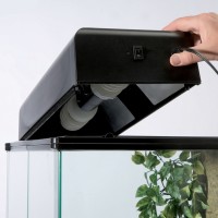 The Exo Terra Compact Top Canopy is a compact fluorescent terrarium canopy designed for use with the Exo Terra Glass Terrarium. This easy-to-install canopy accommodates compact fluorescent bulbs or low-wattage incandescent bulbs. A combination of different Exo Terra compact fluorescent bulbs (like the Natural Light and Reptile UVB) can be used to create the ideal ultraviolet/visual light ratio or a combination with an incandescent light source such as the Daytime Heat Lamp to increase the ambient air-temperature. Optional accessories, such as the Exo Terra Digital Thermometer, can be slid into the special sliding rim on the top of the canopy.