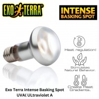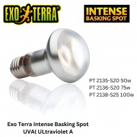 A lamp specially designed as a basking spot lamp. The tight beam can be directed precisely on an area to create a basking site. The heat and light in the beam are increased by 35%, allowing greater distances between the bulb and the basking site. The UVA (ultraviolet A) light contributes to reptiles' physiological well-being.