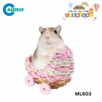 Marukan Carnival Baby Push Cart for Dwarf Hamster is a baby cart-shaped toy that looks cute inside. Because it uses natural materials, it is safe even if a hamster bites it. You can decorate the inside of the cage cutely.