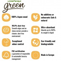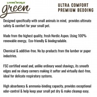 Designed specifically with small animals in mind, the Living World Green Ultra Comfort Premium Bedding provides ultimate safety and comfort for your small pet. Ultra Comfort Premium Bedding is eco-friendly and biodegradable, made from the highest quality, fresh Nordic Aspen and produced using 100% renewable energy. Chemical and additive-free and containing no by-products from the lumber or paper industries, it is made from FSC® certified wood and, unlike ordinary wood shavings, its smooth edges and no sharp corners make it softer and virtually dust-free, ideal for delicate respiratory systems. Living World Green Ultra Comfort Premium Bedding provides exceptional odour control with its high absorbency and ammonia-binding capacity. It will help keep your small pet dry and make cleanup easy.