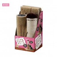 Marukan foldable scratcher tower for cats is a vertical scratching pole that provides two different scratching sensations—made of hemp rope and plush carpet material. It has a dangling mouse toy for your cat to bat and bop. Great for cats that love to scratch carpets as well.