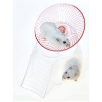 Marukan Hamster's house with wheels is integrated with the house and does not burden the spine. A gentle angle wheel that allows hamsters to run without straining the spine. A spacious house structure under the wheel saves space inside the cage. Adopts a newly designed resin axle that reduces friction noise during rotation.
