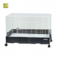 Wild Sanko Easy Home 80 for Rabbits is easy to clean, 80cm wide, spacious, and comfortable for rabbits or guinea pigs. It has a plastic base that is easy on rabbits' feet, a new catcher design along the size and centre, a new door lock design, and a double tray for easy cleaning.